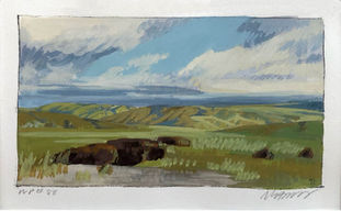 What she discovered, despite the uncertainty, was a deeper connection, solace comes to mind, a healing in the making of marks, growth after a long winter. The horizons in the painted landscapes beckon us forward, the passing clouds offer comfort and respite that the storm is moving on, leaving the glorious remains of being washed clean and full of hope.